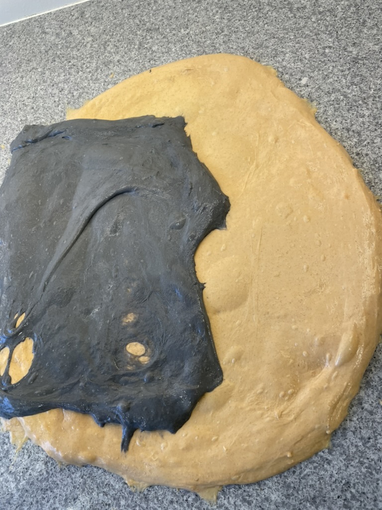 1. Når dejen er æltet og alle ingredienser er blandet, deler du den i to portioner.