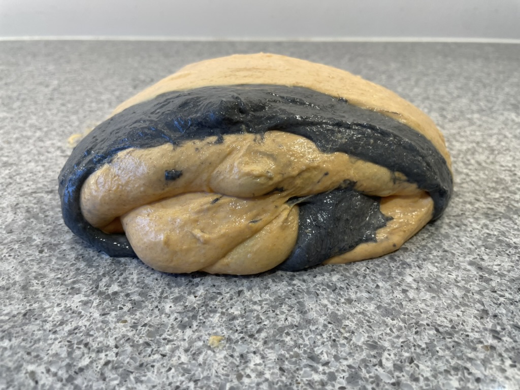 7. Brug en dejskærer til forsigtigt at folde begge deje sammen til en samlet klump. Lad dejen hvile i ca. 30 minutter.